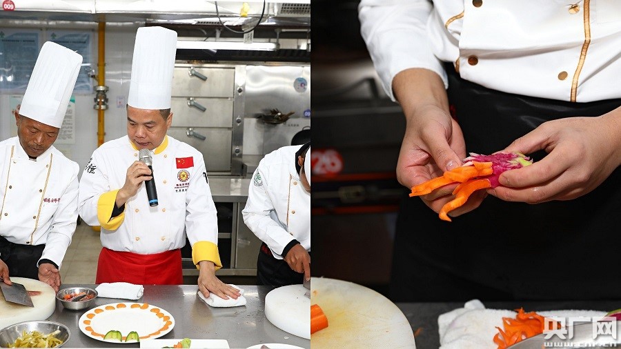 “一人學廚,全家脫貧”,在順德廚師學院參觀展廳里,8個紅色的大字格外顯眼。