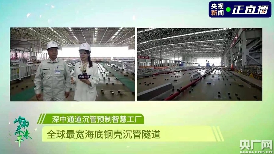 總臺(tái)記者走進(jìn)深中通道沉管預(yù)制智慧工廠(chǎng)。