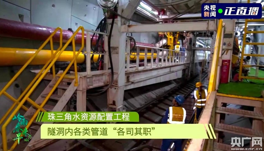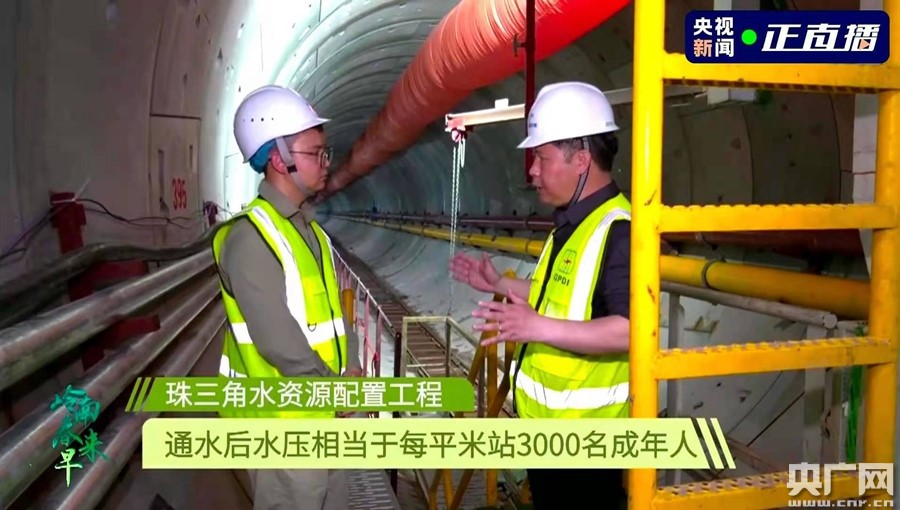 在節(jié)目中,總臺(tái)記者帶領(lǐng)觀(guān)眾去往地下60米,實(shí)地探訪(fǎng)了施工難度頂級(jí)的珠三角水資源配置。