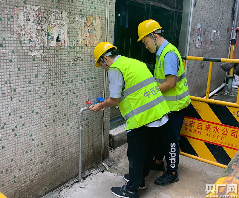 正在安裝自來(lái)水設(shè)備的工人。(央廣網(wǎng)發(fā) 廣州市自來(lái)水公司 供圖)
