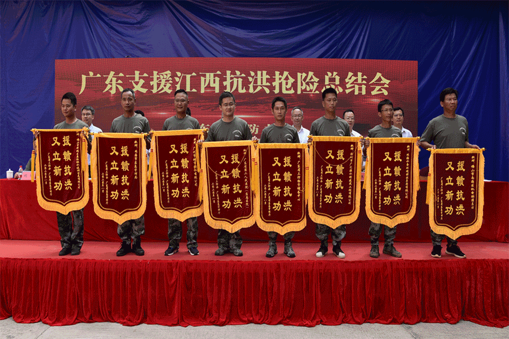 8月31日上午,在廣東支援江西抗洪搶險(xiǎn)表彰總結(jié)會(huì)上,廣東省三防辦、廣東省應(yīng)急管理廳對(duì)廣州水投集團(tuán)廣州排水公司搶險(xiǎn)隊(duì)授予“援贛抗洪 又立新功”錦旗,對(duì)何東權(quán)、陸偉良、梁斌、胡福銳、劉澤明、周家倫、袁文杰7名同志頒發(fā)了“江西抗洪搶險(xiǎn)先進(jìn)個(gè)人”榮譽(yù)證書。