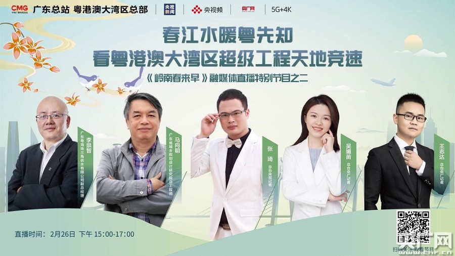 2月26日至2月28日,中央廣播電視總臺廣東總站暨粵港澳大灣區(qū)總部推出六期融媒體直播特別節(jié)目《嶺南春來早》,通過央視新聞、央廣網(wǎng)、央視頻等總臺新媒體平臺,展現(xiàn)廣東在開局之年主動作為的奮戰(zhàn)場面。