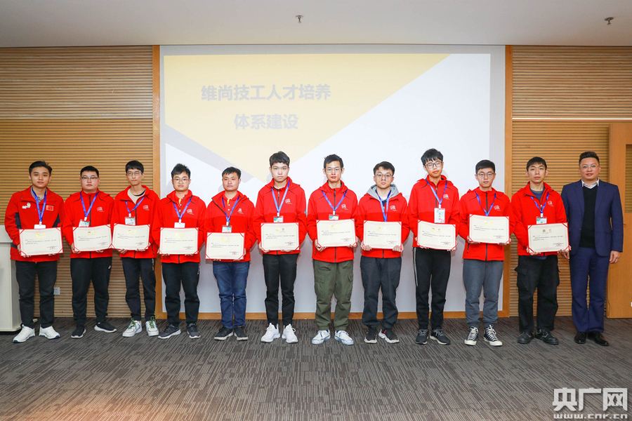 維尚向到訪的年輕工匠們頒發(fā)“高級(jí)技術(shù)顧問”聘書(央廣網(wǎng)發(fā))
