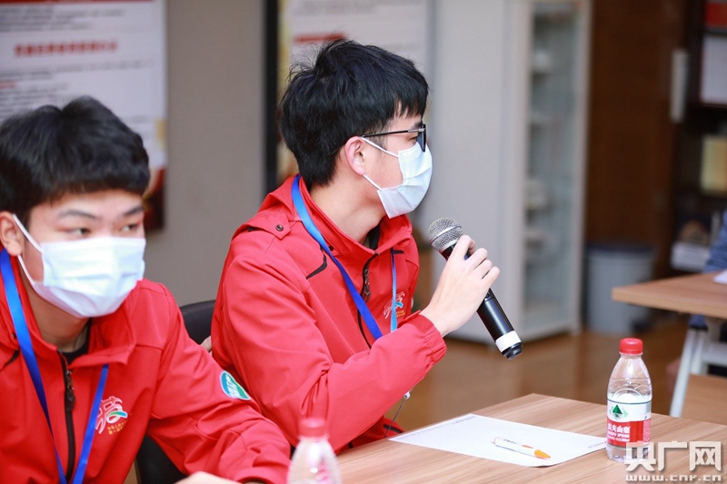 第一屆全國技能大賽云計(jì)算項(xiàng)目冠軍陳新源提問。(央廣網(wǎng)發(fā))