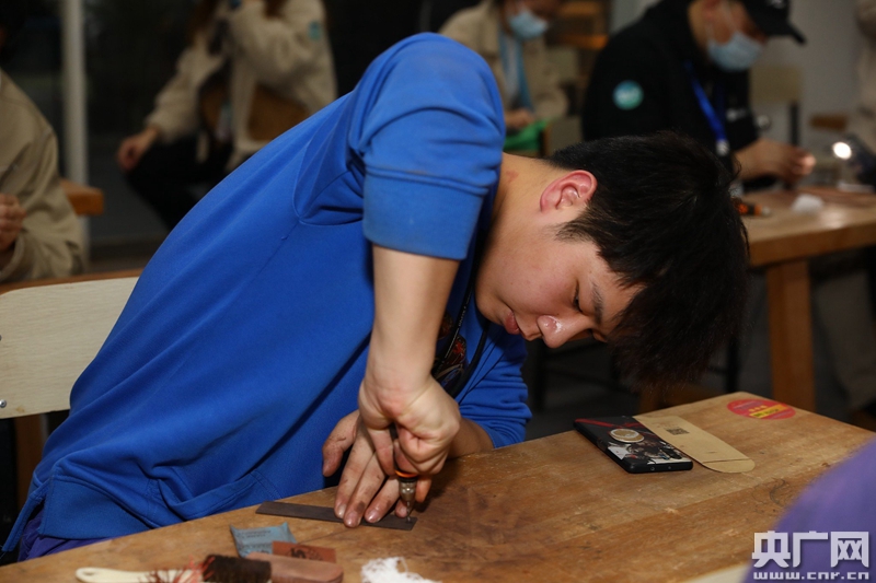 “原來(lái)制作一個(gè)小小的書(shū)簽也會(huì)這么累!苯】嫡兆o(hù)項(xiàng)目的選手張敏告訴記者,在學(xué)院課堂互動(dòng)環(huán)節(jié)參與制作紅木書(shū)簽,感受到制作的不易。在課室的另一邊,30秒不到就能把大師準(zhǔn)備好的魯班鎖拆解完畢,對(duì)此,精細(xì)木工項(xiàng)目的陳澤錕表示,了解魯班鎖是自己專(zhuān)業(yè)的“第一堂課”。