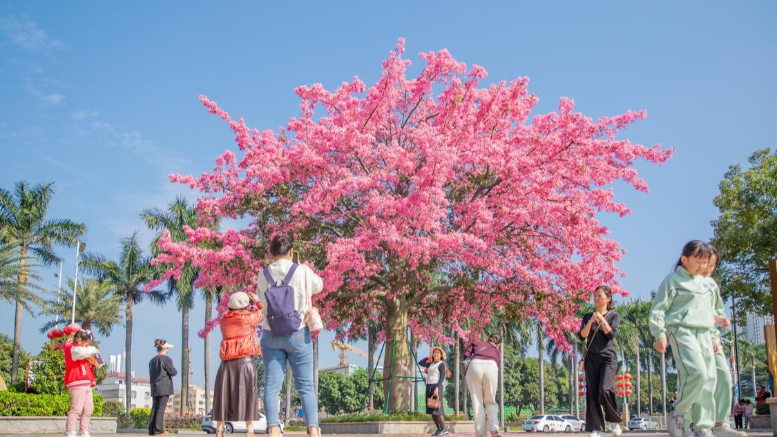 異木棉盛放,吸引了眾多攝影愛好者和市民前來觀賞和拍照。