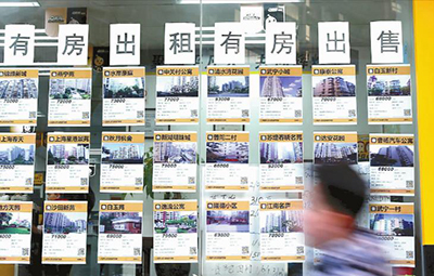 行人從上海市江蘇路上的一家二手房中介門店前走過。 新華社發(fā)