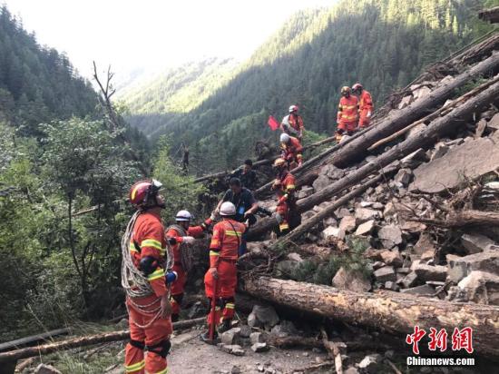 8月9日下午16時左右,德陽消防14名黨員突擊隊員徒步行軍10余公里,歷時3小時到達(dá)洛日朗附近一帶搜索被困群眾,期間余震不斷,大小石頭不斷的從山上滾下來,救援官兵把生死拋開,寸步難行的在山間搜尋。 圖片來源:四川消防供圖
