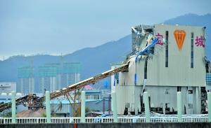 廣珠西線高速南屏出口旁邊一水泥攪拌站遭臺風(fēng)吹襲。廣州日報(bào)全媒體記者龍成通 攝