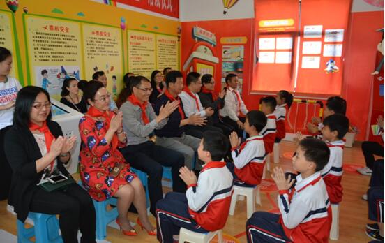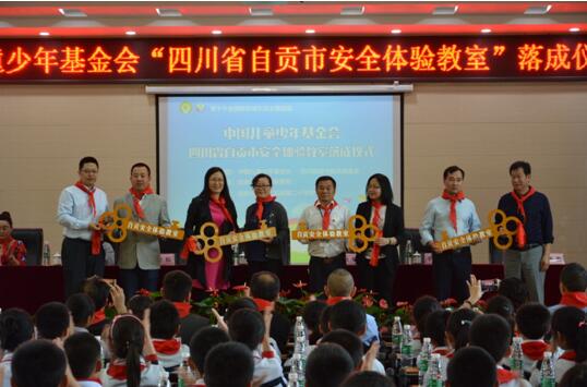 中國兒基會兒童安全教育工程向自貢捐建首批四間安全體驗教室鑰匙遞交環(huán)節(jié)