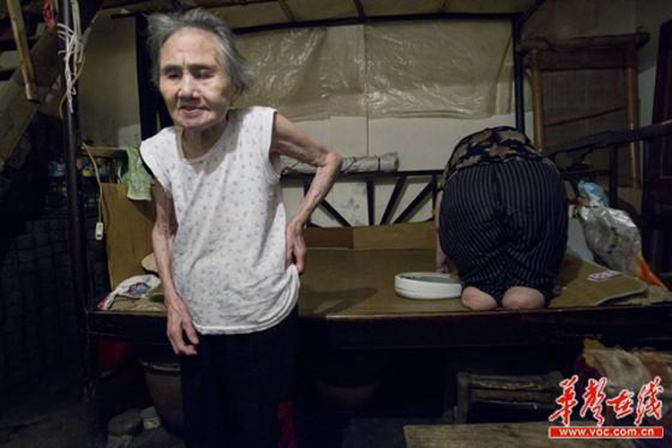 楊玉輝母女倆的家,隱藏在長沙繁華都市深處。在幸福橋社區(qū)住了近一個世紀的家里,九旬老人王仲蓮60年如一日地照顧重殘“無腳女兒”楊玉輝,用言行踐行母親責任、用一生書寫母愛光輝。60年來,王仲蓮的時間都是圍著女兒轉(zhuǎn)的,每天早晨,她起床第一件事就是幫女兒穿衣,洗臉,喂飯,圖為老人照顧女兒如廁,將坐便器放在床上。