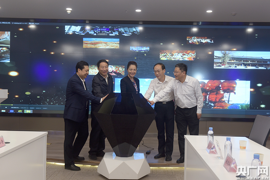 甘肅省委常委、宣傳部長陳青(中)等人啟動本次展覽(央廣網(wǎng)記者 焦健 攝)
