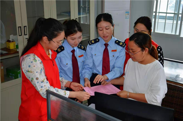 浦北縣稅務(wù)局志愿者向企業(yè)介紹殘保金征收優(yōu)惠政策(央廣網(wǎng)發(fā) 馬強(qiáng)攝)