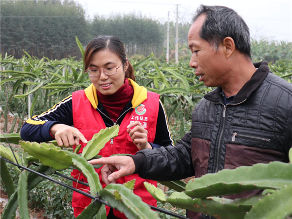 發(fā)現(xiàn)了問(wèn)題就要解決。陳金蓮與村內(nèi)干部積極溝通、考察研究后,建議和引導(dǎo)村民改種果樹(shù)類(lèi)作物。同時(shí),陳金蓮以“公司+農(nóng)戶”的合作方式發(fā)展養(yǎng)殖業(yè),讓村民加入養(yǎng)殖公司或者合作社,“雞苗配發(fā)—養(yǎng)殖—回收”一系列流程化,形成產(chǎn)業(yè)。此外,貫徹“精準(zhǔn)幫扶,因戶施策”的理念,陳金蓮采用教育幫扶、低保政策兜底等多種方式,保障村民生活,提供切實(shí)地服務(wù)與幫助。