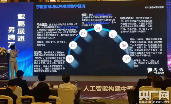 廣西社會(huì)科學(xué)院數(shù)量經(jīng)濟(jì)研究所所長(zhǎng)、研究員曹玉娟在發(fā)言中提到,不少東盟國家也在發(fā)展數(shù)字經(jīng)濟(jì),廣西應(yīng)該借助區(qū)位優(yōu)勢(shì),打造面向東盟的數(shù)字經(jīng)濟(jì)新高地。(央廣網(wǎng)發(fā) 記者唐志強(qiáng)攝)