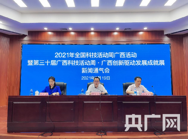 央廣網(wǎng)南寧5月20日消息(記者羅蘭)5月19日,廣西壯族自治區(qū)科技廳在南寧召開新聞發(fā)布會。發(fā)布會透露,2021年全國科技活動周廣西活動暨第三十屆廣西科技活動周·廣西創(chuàng)新驅(qū)動發(fā)展成就展(以下簡稱“兩周一展”)將于2021年5月22日-28日在廣西舉行,活動主題為“百年回望:中國共產(chǎn)黨領(lǐng)導科技發(fā)展”,將開展“1個儀式、1個展會、10大活動”。