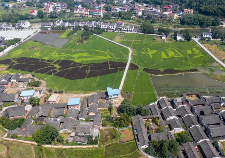 央廣網(wǎng)河池7月28日消息(記者黃月芬 實習(xí)生寧卓妮)在廣西河池南丹縣芒場鎮(zhèn)巴平村綠稻花海休閑農(nóng)業(yè)核心示范區(qū)里,一幅以稻田為“畫板”、以稻為“顏料”,由“百年輝煌 偉大復(fù)興”八個藝術(shù)字為主,長城、樹林、村莊、白鴿等圖案為輔共同構(gòu)成的稻田圖畫,讓人滿目清新。