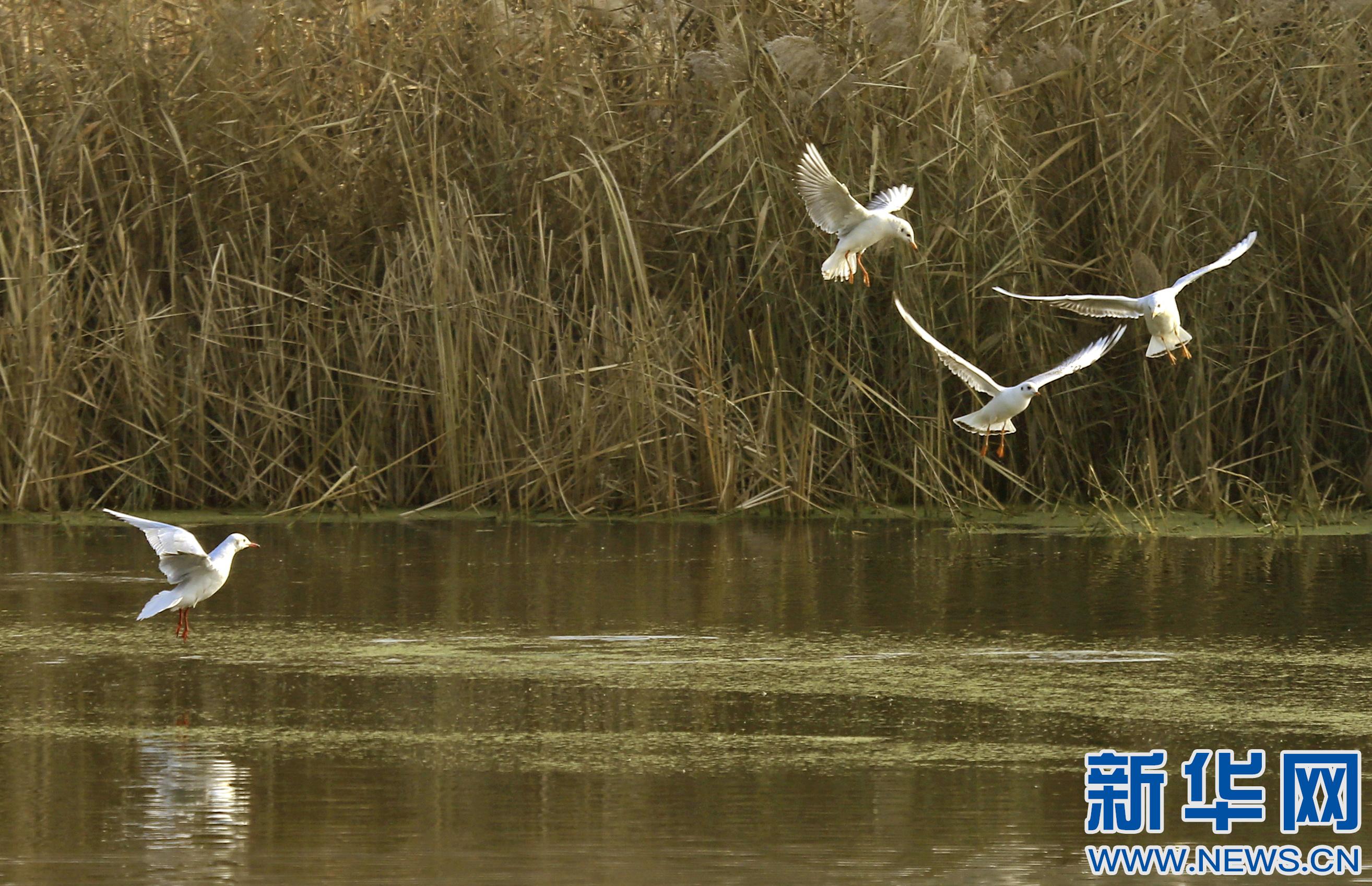 •   12月7日,候鳥在衡水湖上嬉戲。(新華社記者牟宇 攝)