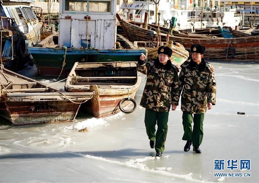 1月29日,河北省秦皇島邊防支隊(duì)北戴河邊防派出所官兵在轄區(qū)漁港碼頭巡邏。新華社記者 楊世堯 攝 -