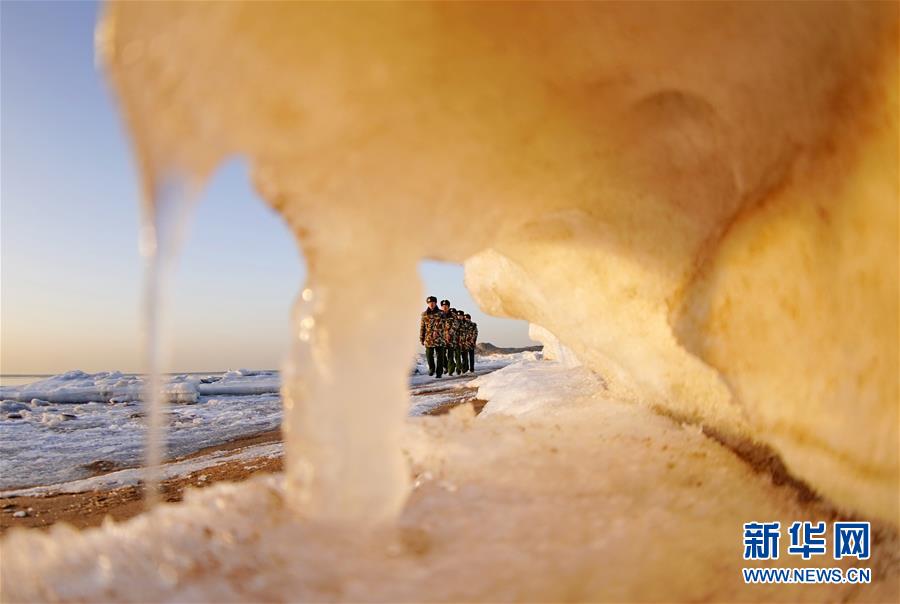 1月29日,河北省秦皇島邊防支隊(duì)北戴河邊防派出所官兵在海邊巡邏。新華社記者 楊世堯 攝