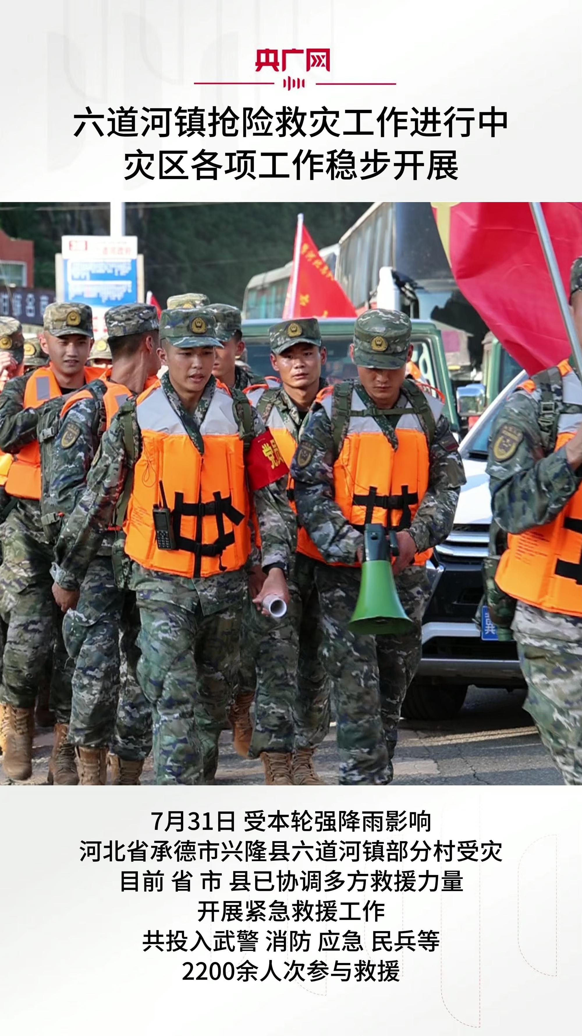 2200余人次參與河北承德興隆縣六道河鎮(zhèn)搶險(xiǎn)救災(zāi)