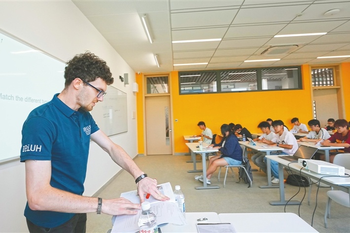 外籍教師正給海南比勒費(fèi)爾德應(yīng)用科學(xué)大學(xué)的學(xué)生上英語(yǔ)課。