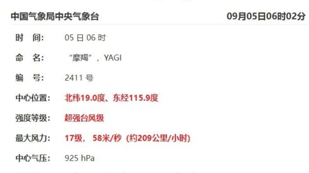 再升級!臺風(fēng)“摩羯”中心附近最大風(fēng)力17級