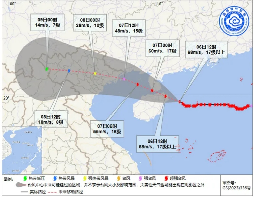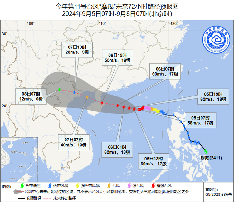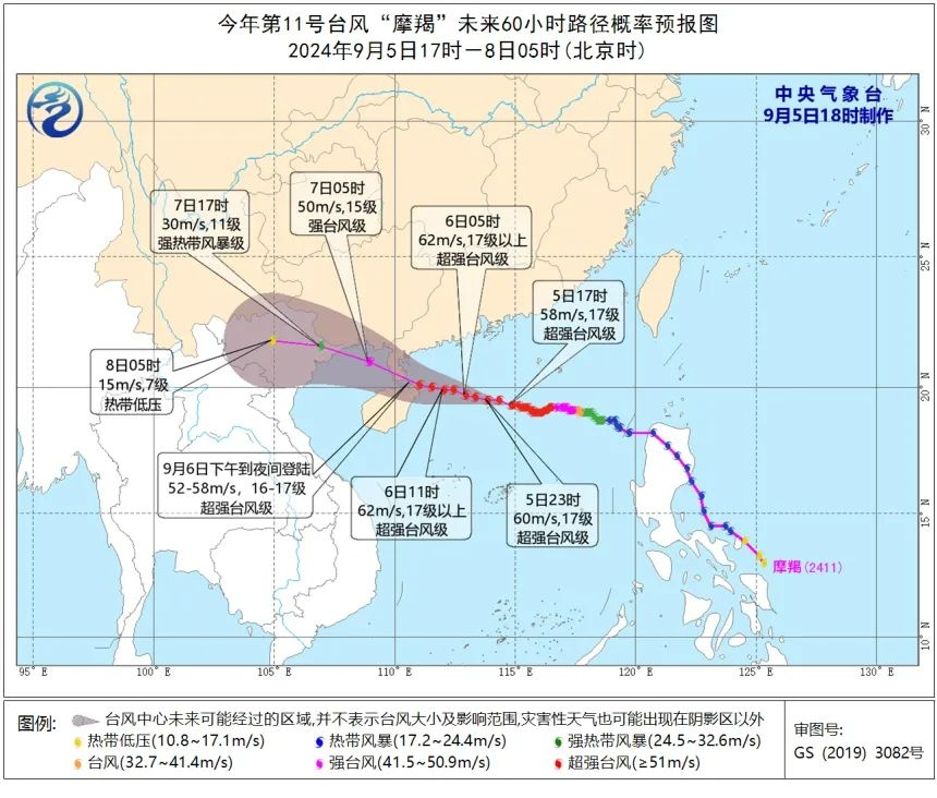 最新!超強(qiáng)臺風(fēng)“摩羯”將于9月6日下午到夜間在海南瓊海到廣東電白登陸