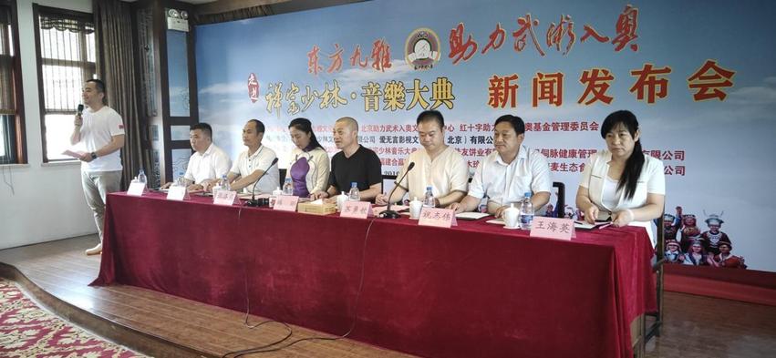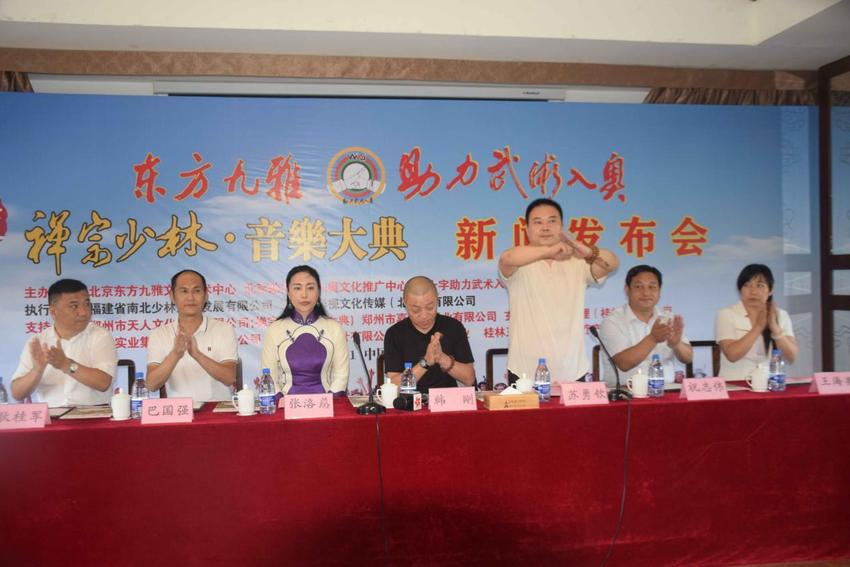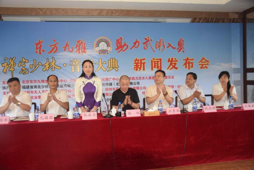 圖為東方九雅助力武入奧走進(jìn)禪宗少林音樂大典的新聞發(fā)布會現(xiàn)場