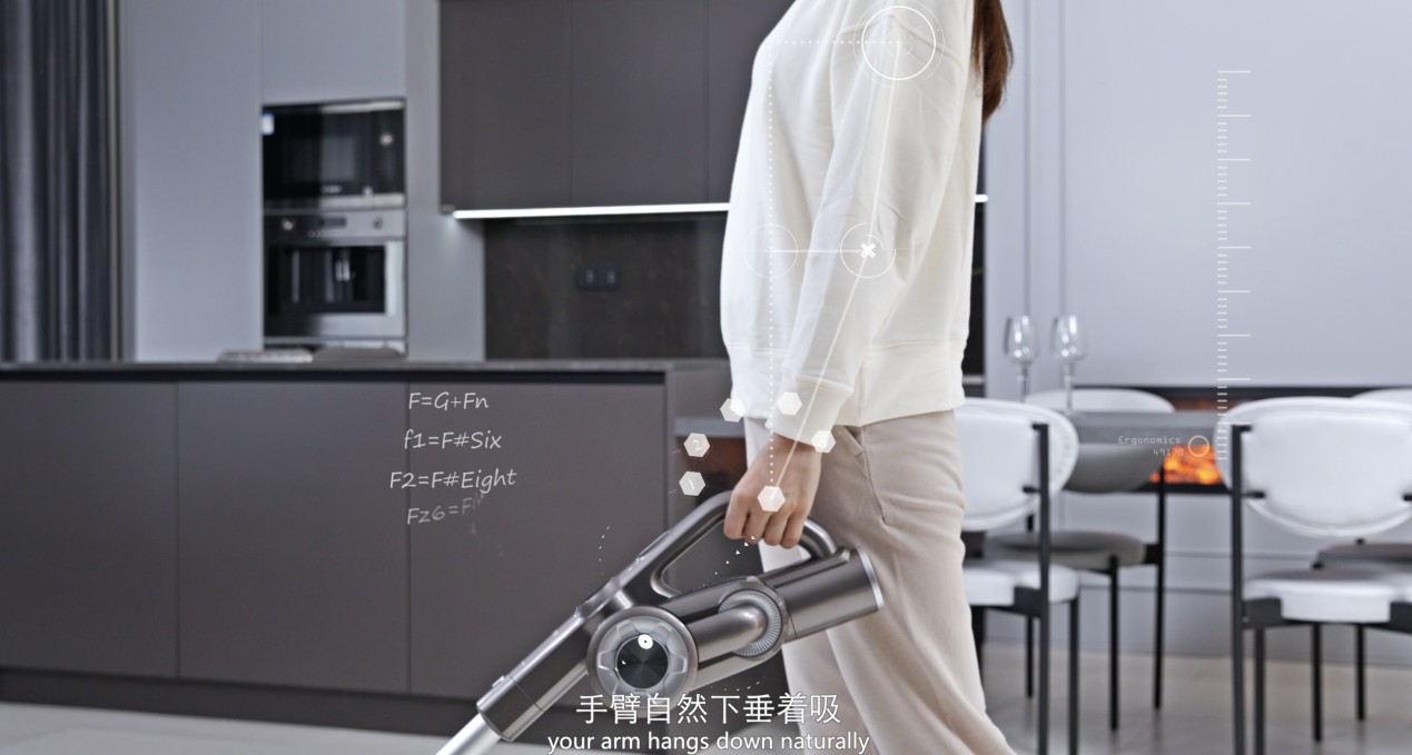 該設(shè)計符合人體工程學(xué)省力原理,機(jī)器順勢提在手上,清潔不累手。而傳統(tǒng)的吸塵器多為側(cè)手把設(shè)計,使用時需要手臂彎曲發(fā)力,容易造成手部酸痛。
