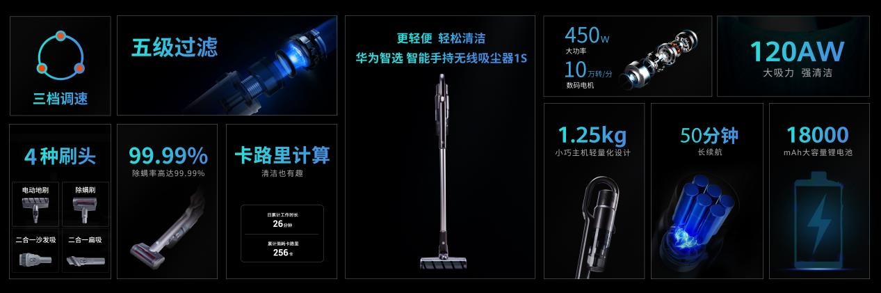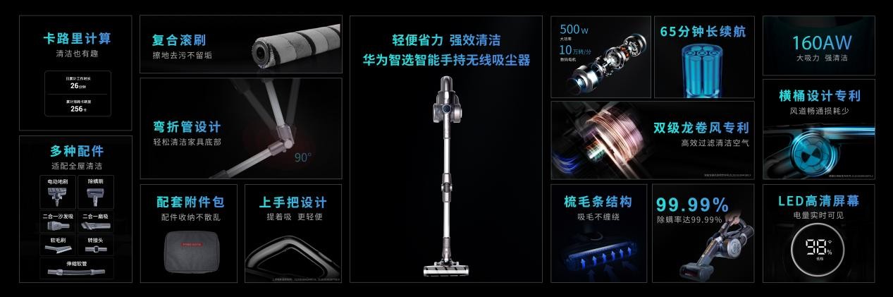 此次發(fā)布會新品上華為智選智能手持無線吸塵器,使用起來更順手,手腕承力小,即使長時間使用也不會感到手累,而且合理的結(jié)構(gòu)設(shè)計使得吸力衰減慢,續(xù)航時間長,或許能做到使你的生活更輕松一點(diǎn)。