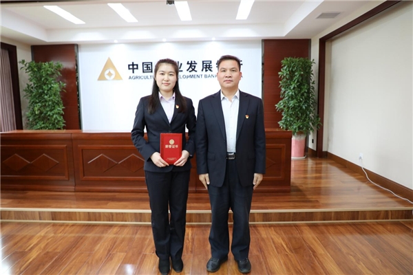 農(nóng)發(fā)行荊州市分行黨委書記、行長王良勇同志為獲獎(jiǎng)人員頒獎(jiǎng)