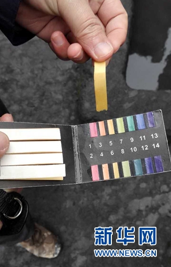 督查人員現(xiàn)場對脫硫設(shè)施脫硫液pH值進行監(jiān)測,pH值顯示5,呈弱酸性。(督查組人員手機拍攝)