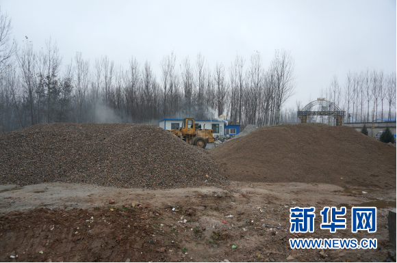 在易縣橋頭鄉(xiāng)附近,督查組發(fā)現(xiàn)沒有經(jīng)過任何苫蓋的砂石料 新華網(wǎng)記者 袁晗攝