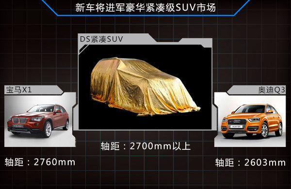 DS緊湊SUV有望采用與DS4相同的1.6THP發(fā)動機,同時還將搭載一款全新的1.8T發(fā)動機,最大功率預(yù)計將達(dá)到147kw,完全可以滿足該車受眾市場的需求。對此長安標(biāo)致雪鐵龍副總裁蔡建軍先生表示:DS首款SUV定位于緊湊級別,軸距在2700mm以上,將搭載1.6T和1.8T增壓引擎,這款車將在明年4月正式發(fā)布,預(yù)計在第四季度上市銷售。