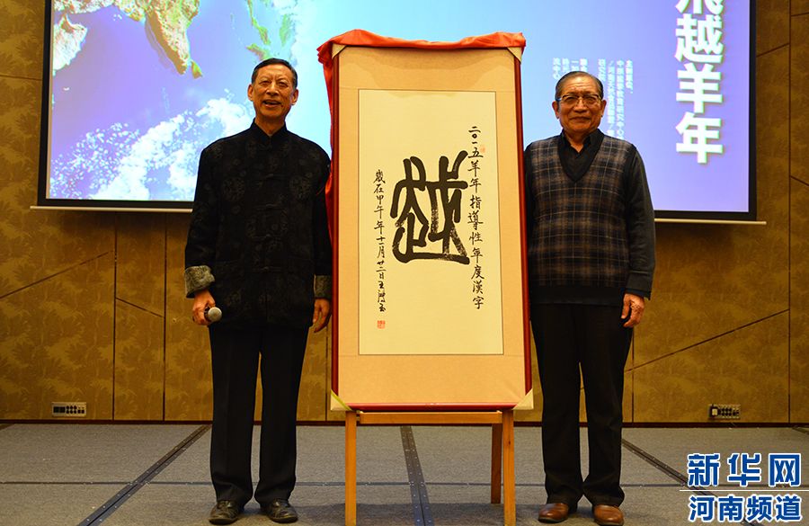 中國(guó)著名文字學(xué)家白雙法先生與原河南省文聯(lián)副主席,中國(guó)著名書法家王鴻玉先生共同發(fā)布2015羊年指導(dǎo)性年度漢字“越”。