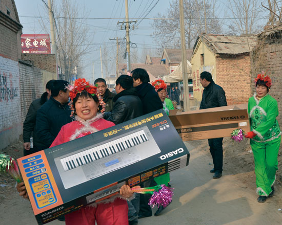 魯河鎮(zhèn)群眾收到捐贈的樂器 合不攏嘴