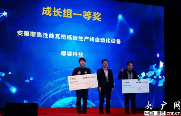 金水區(qū)委常委、常務副區(qū)長楊潔代表大賽組委會宣布大賽各獎項和315萬獎金的歸屬,最終安第斯高性能瓦楞紙板生產線自動化設備、嘟嘟科技斬獲成長組的一等獎,摘取50萬元的大獎。