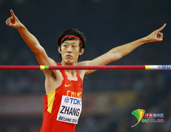 張國偉在2015年北京世界田徑錦標賽男子跳高比賽中獲得亞軍。資料圖
