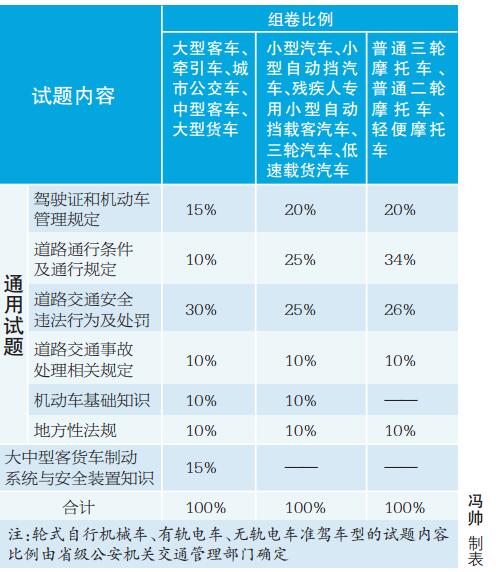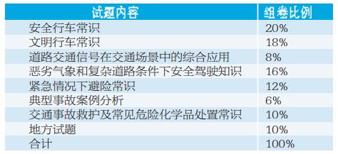 科目三安全文明駕駛常識考試試題內(nèi)容比例:
