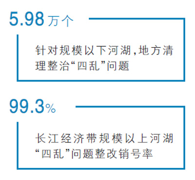 “清四亂”專項行動以來,全國共拆除違法建筑面積3936萬平方米,清理非法占用河湖岸線2.5萬公里,清除河道內(nèi)垃圾3500多萬噸,整治非法采砂點1萬多個、非法砂石2100多萬立方米,清除圍網(wǎng)養(yǎng)殖近13萬畝。2019年,各地問責河長湖長和有關部門負責人3961人次。通過清理整治,河湖面貌明顯改善,行蓄洪能力提高,河湖水質(zhì)逐步向好。