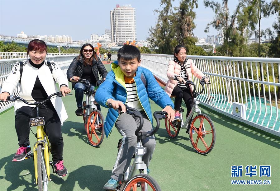 這是廈門市湖里區(qū)云頂中路和仙岳路交叉口的空中自行車道(2月9日攝)。1月26日,全國首條空中自行車道——福建廈門云頂路自行車快速道示范段試運營。這條全程高架的空中自行車道全長7.6公里,試運營以來吸引眾多市民前來騎行體驗,感受“空中騎行”的獨特魅力。 新華社記者 林善傳 攝 圖片來源:新華網(wǎng) -