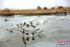 2月16日,地處甘肅河西走廊,祁連山下的張掖市,在春風(fēng)的吹拂下,氣候開始溫暖起來。在張掖國家濕地公園里,湖水冰面開始消融,一群斑頭雁在此嬉戲、覓食。它們有站的,有臥的,還有小心翼翼在冰面上行走的,萌態(tài)十足。 陳禮 攝 -