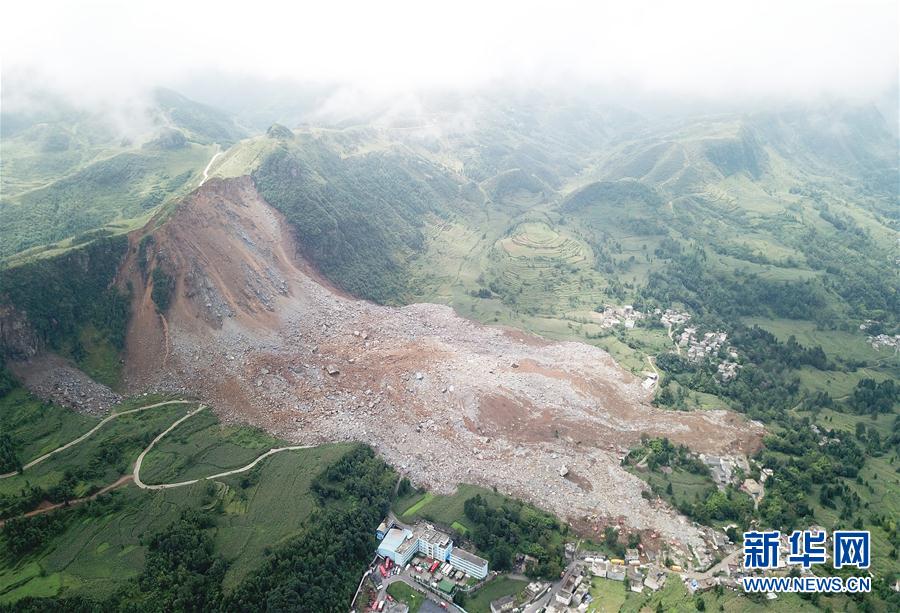 航拍山體滑坡現(xiàn)場(8月29日攝)。截至8月29日16時(shí)30分,貴州省納雍縣山體崩塌地質(zhì)災(zāi)害救援現(xiàn)場已搜救出25人,其中17人死亡、8人受傷,目前尚有18人失聯(lián)。據(jù)悉,崩塌山體距離災(zāi)害地垂直落差約200米,崩塌巖體約為60余萬立方米。災(zāi)害發(fā)生后,當(dāng)?shù)亟M織專業(yè)力量全力以赴晝夜不休開展救援。新華社記者陶亮攝 -