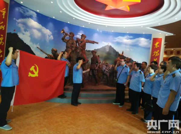 在紀(jì)念館里,全體黨員干部一起面對鮮艷的黨旗莊嚴(yán)地舉起右手重溫入黨誓詞,立下自己對黨忠誠的誓言,表達(dá)了為黨的事業(yè)奮斗終身的決心和愿望。