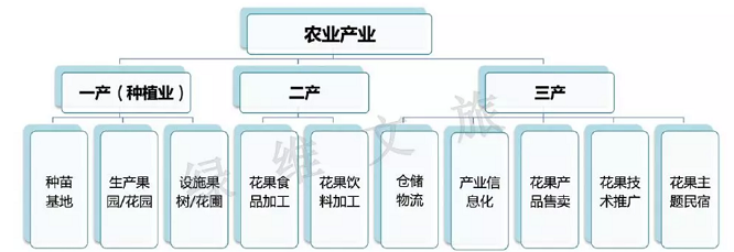 以花鄉(xiāng)果巷田園綜合體為例,在花果種植的基礎(chǔ)上,大力發(fā)展花果加工、飲料加工等二產(chǎn)以及花果售賣、技術(shù)推廣、倉儲物流等三產(chǎn),形成以花果為核心的全產(chǎn)業(yè)鏈聚集結(jié)構(gòu)。