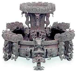 被稱為“古代冰箱”的銅鑒缶,外表極富裝飾美,集渾鑄、分鑄、焊接制作工藝于一體,缶置于鑒內(nèi),蓋好蓋,二者渾然一體。省博物館館長方勤介紹,為使二者結(jié)合穩(wěn)固,鑒底部伸出品字形三個彎鉤,尊的圈足前后留有三個穿眼,剛好容彎鉤插進,并可自動倒鉤扣住。無論從藝術(shù)角度還是從實用角度講,都已有現(xiàn)代工業(yè)設(shè)計的味道。