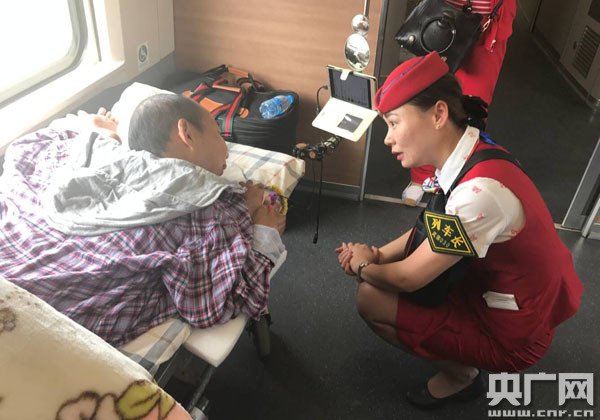 上午9點(diǎn)19分左右,由武漢客運(yùn)段擔(dān)當(dāng)?shù)腉1034次高鐵動(dòng)車組列車?吭谇G州站。此時(shí),荊州車站送來一名重病旅客,據(jù)了解,該旅客患有強(qiáng)制性關(guān)節(jié)炎,全身除了眼睛能動(dòng)外,四肢都無法伸直,全部彎曲在頭部的兩邊。當(dāng)班列車長(zhǎng)李婷了情況解后,立即與其他旅客協(xié)商對(duì)座位進(jìn)行調(diào)整,在她的動(dòng)員下,許多旅客紛紛相讓,給重病旅客營造了一個(gè)寬松的乘車環(huán)境。