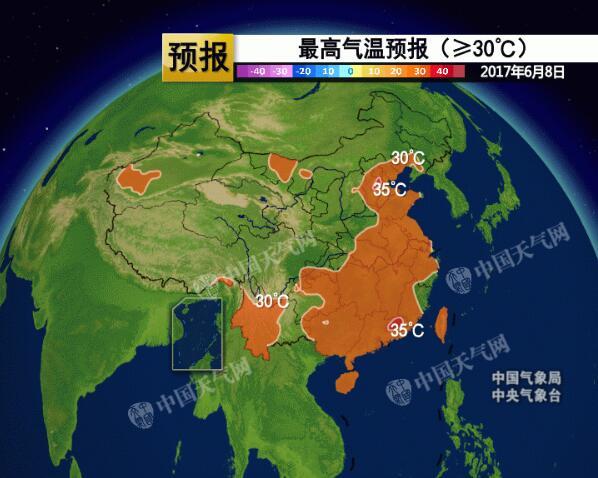 今天,華北、華南的高溫區(qū)域?qū)⒚黠@擴(kuò)大。