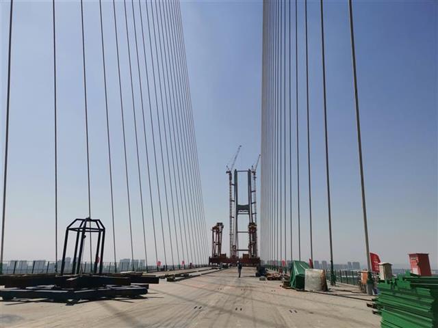 “大橋采用交叉索設(shè)計(jì),主要是為了提高大橋主跨剛度,彌補(bǔ)大跨度鋼箱梁剛度小的不足,同時(shí)又兼顧經(jīng)濟(jì)性與實(shí)用性!敝需F大橋局安九鐵路項(xiàng)目經(jīng)理王貴明形象比喻說,這類似于在兩個(gè)相隔很遠(yuǎn)的凳子上架一個(gè)木板,在木板上放重物時(shí),木板中間就會(huì)向下變形或折斷;但如果在木板中間加一個(gè)足夠的拉力就能避免木板過大變形或損壞。